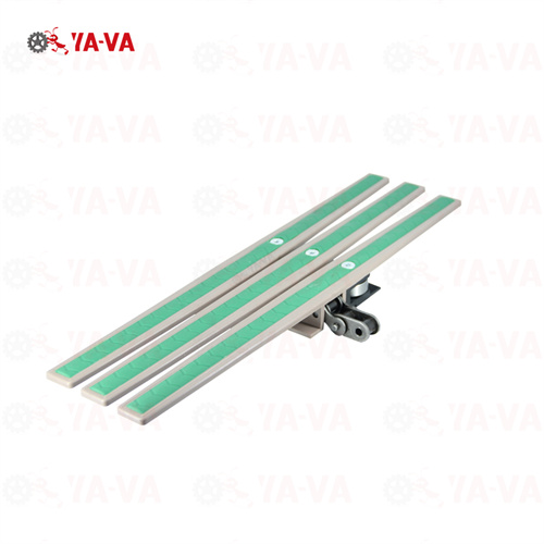 链板本体卡扣在链条上,方便更换。附带高摩擦表面,布置防滑间距不同,效果不同。
