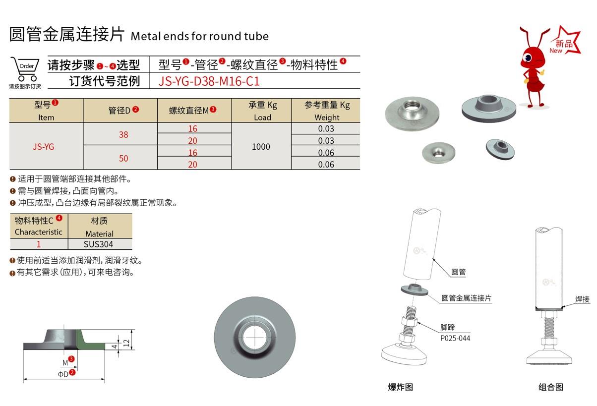 适用于圆管端部连接其他部件。